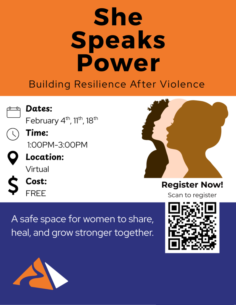 She Speaks Power is an empowering group series designed to support women who have experienced any form of violence, including emotional, mental, physical, and/or sexual violence. The program aims to create a safe and inclusive space where women can connect, heal, and build resilience together. This group is open to women 18 years and older who are seeking strength, empowerment, and community.